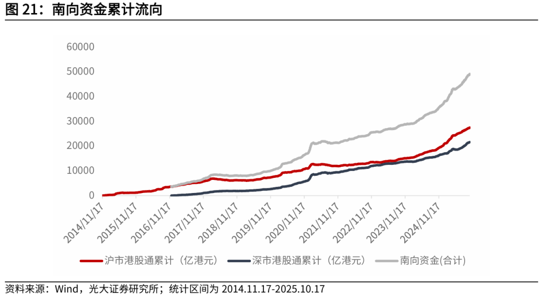 本周港股通交易区间为2025年10月13日-2025年10月17日,南向资金净流入450.89亿港元,其中沪市港股通净流入205.88亿港元,深市港股通净流入245.00亿港元。