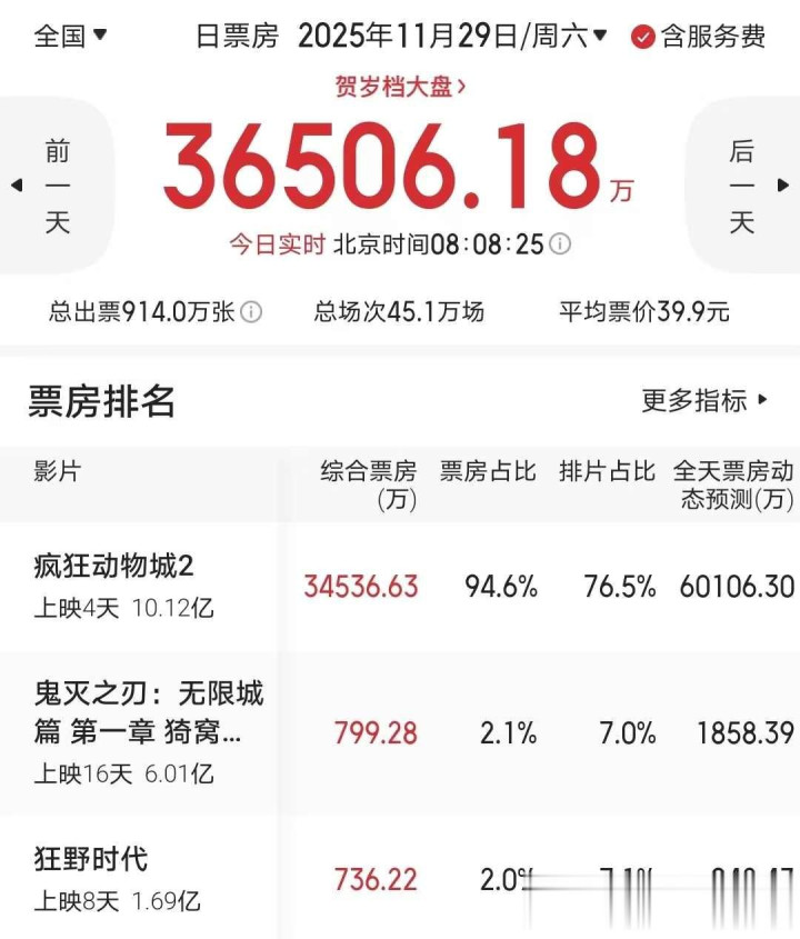 11月26号《疯狂动物城2》上映,头一天票房就有2.2亿,但第二天直接掉到1.4亿,好多人就说这电影可能不行了,业内人士算了一下账,觉得它在中国最多也就卖25亿,全球票房顶多22亿美元,这时候《哪吒2》还稳稳坐在那儿,全球已经卖了22亿,大家都觉得今年动画片的冠军肯定是它了。