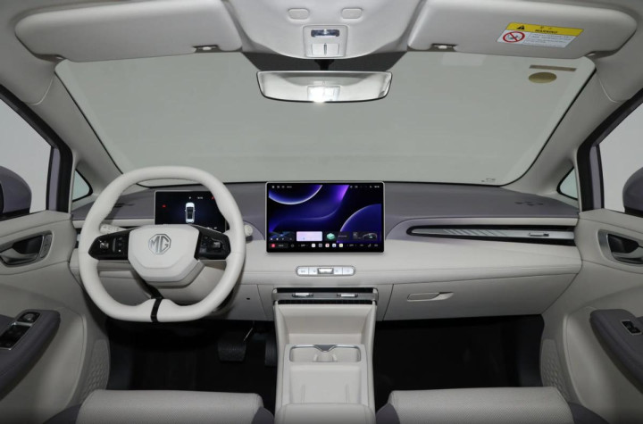 坐进车内,名爵MG4的内饰也采用当下流行的设计风格,整个中控台的布局确实要比以往更加简约,但是从配置上来看,名爵MG4入门版带来了廉价感十足的塑料方向盘和织物座椅,这套配置组合出现在这个时间段确实会显得有些潦草。不过从次低配车型开始,名爵MG4标配了皮质方向盘和仿皮座椅,而且还有7英寸全液晶仪表和12.8英寸的中控屏幕,再加上骁龙8155芯片,还可以保证车机系统的操作流畅度。而对于高配版本的名爵MG4,更是带来了15.6英寸的中控大屏,并且还有方向盘加热和前排主副驾驶座椅部分的通风加热功能。