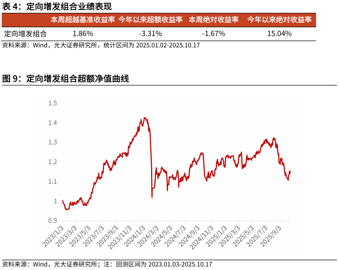 本周定向增发组合相对中证全指获取正超额收益,定向增发组合相对中证全指获得超额收益1.86%。